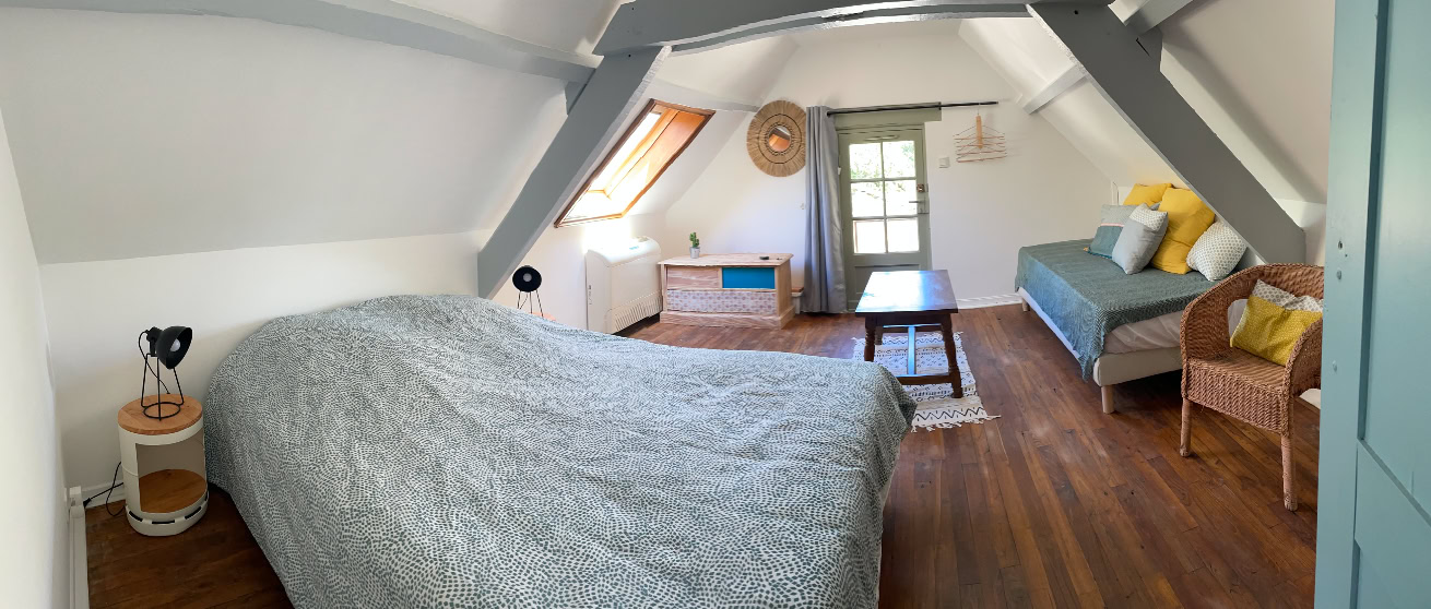 Capacité de la maison : 6 pers. Les chambres ont une décoration épurée, naturelle pour passer des nuits reposantes et confortables. Chaque chambre dispose d’une climatisation et d’un ventilateur.